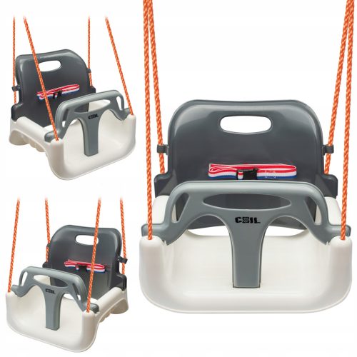 HUŚTAWKA DLA DZIECI OGRODOWA FOTEL WISZĄCY MOCNA 3w1 KUBEŁKOWA PASY SZARA