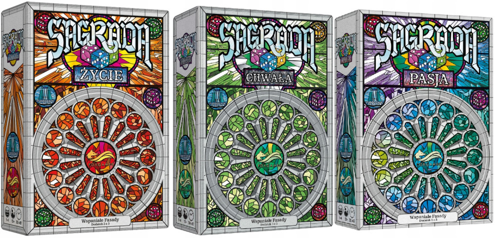 SAGRADA gra planszowa WSZYSTKIE DODATKI (Chwała Pasja Życie) PIĘKNA Witraże