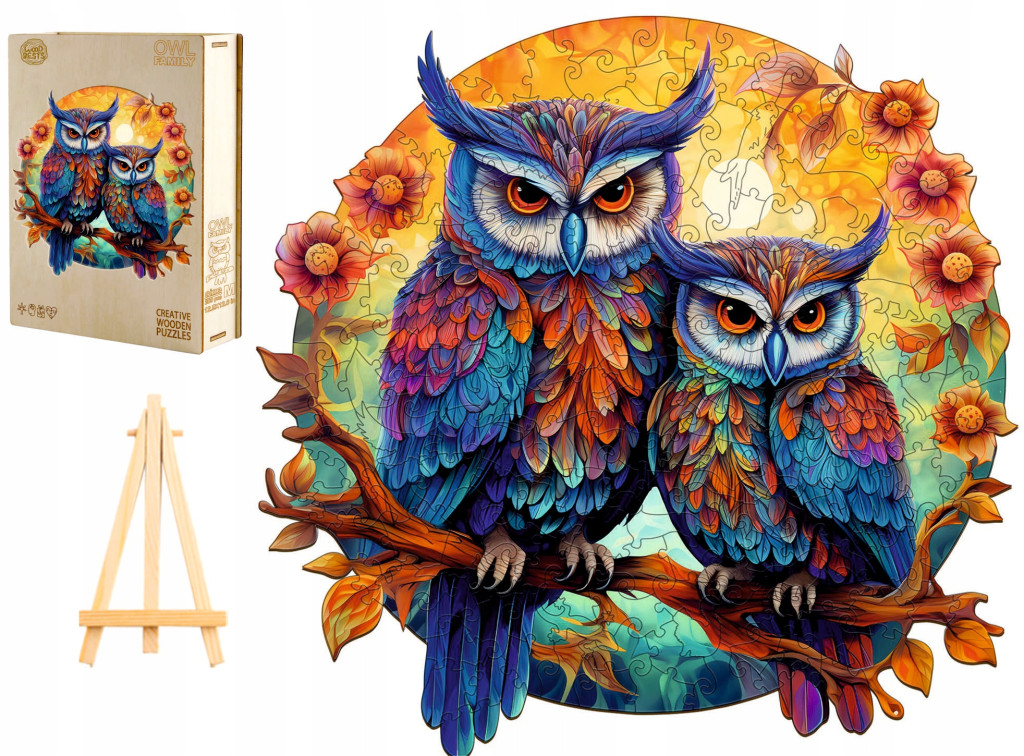 DREWNIANE PUZZLE DLA DOROSŁYCH DUŻE SOWY RODZINA