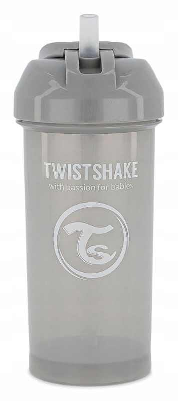 TWISTSHAKE 78680 Bidon Straw Cup 360ml 6+ Pastel Grey