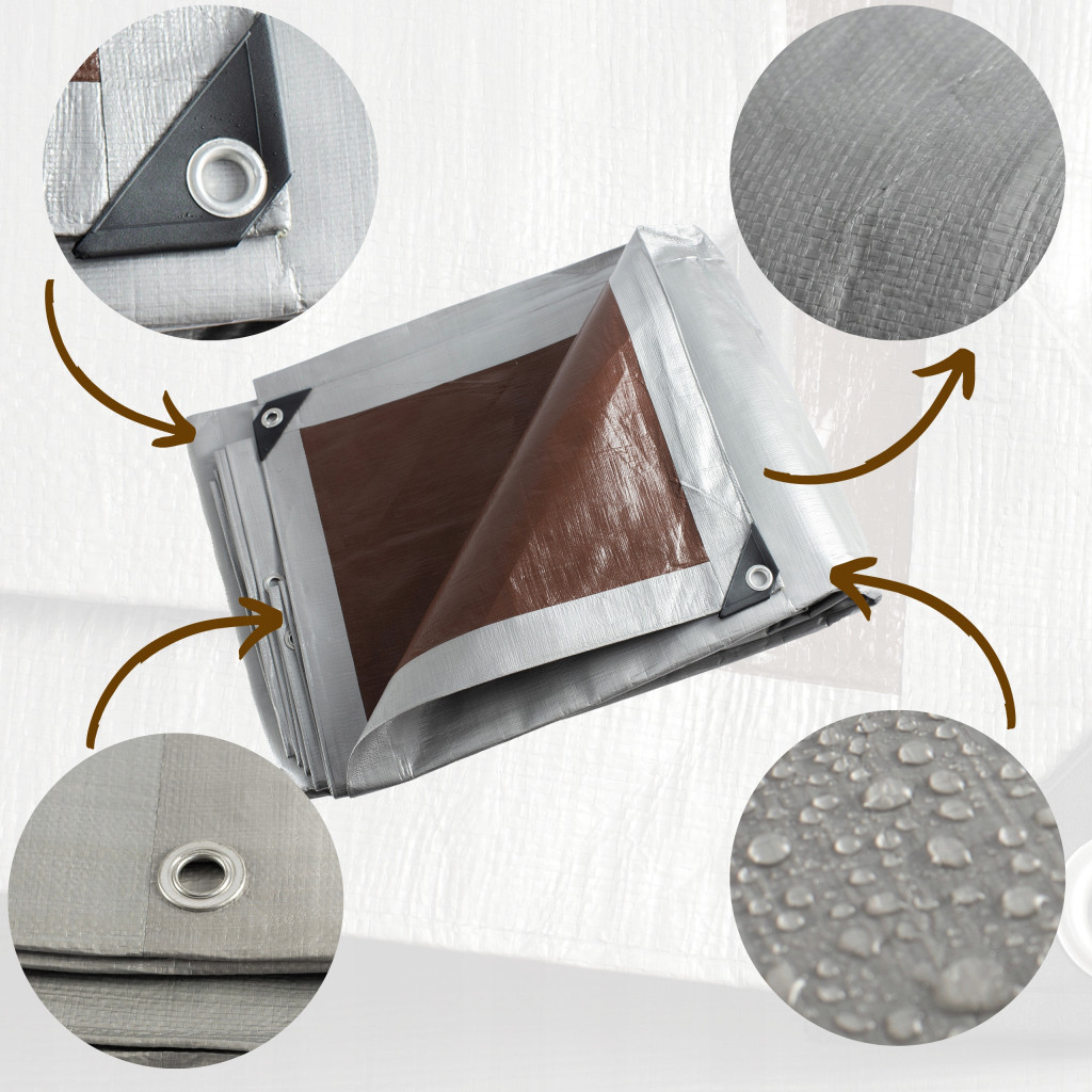 Perfetta per vari usi, dal coprire legname, mobili e materiali da costruzione, a proteggere macchine, moto, barche o piscine da giardino, questa plandeka è quattro volte più spessa rispetto ai modelli standard e dispone di bordi rinforzati e inserti spessi in plastica che stabilizzano gli angoli, aumentando notevolmente la sua stabilità e durabilità.