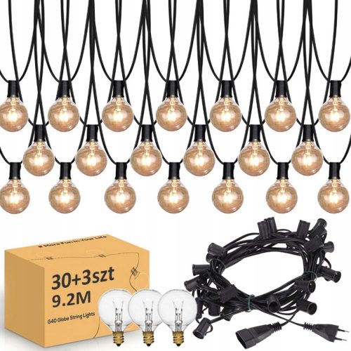 ◀◀◀  Girlandy Lampki ogrodowa 9.2M + 30 żarówka + +3 zapasowe żarówki▶▶▶