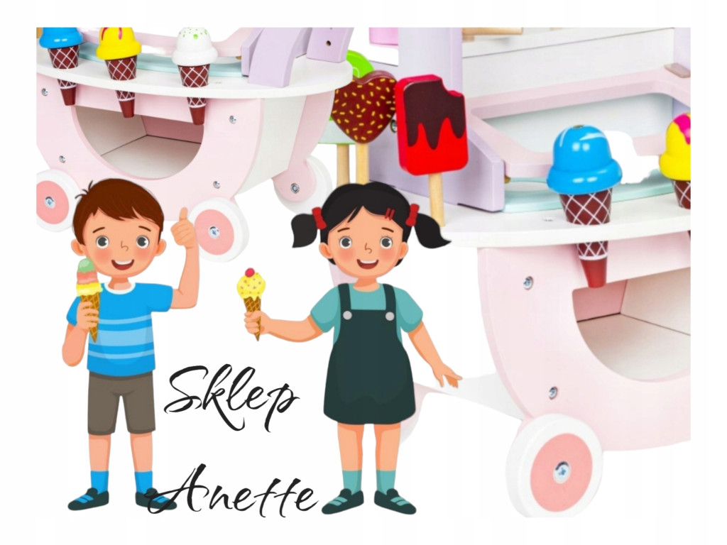 ✅ Zawartość: wózek, 6 lizaków, 3 lody, łyżka