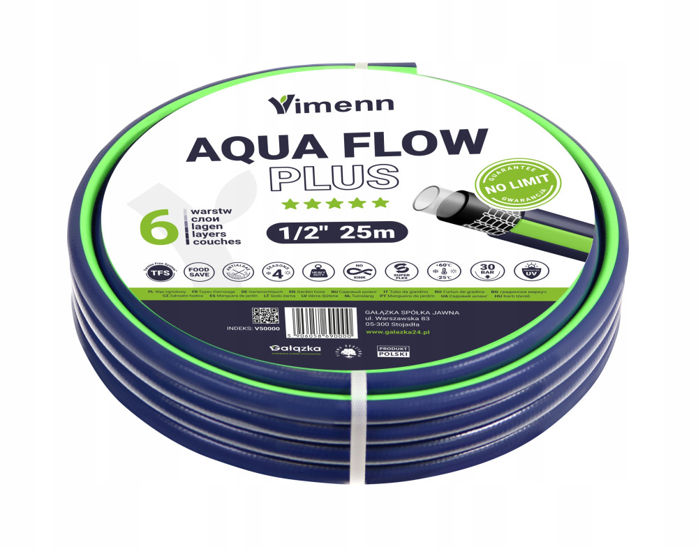 WĄŻ OGRODOWY Vimenn 6 WARSTW 1/2" 25m AQUA FLOW PLUS POLSKI