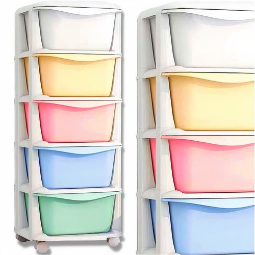 POJEMNIK NA ZABAWKI REGAŁ PLASTIKOWY KOSZ SZUFLADY MOBILNY ORGANIZER 5W1