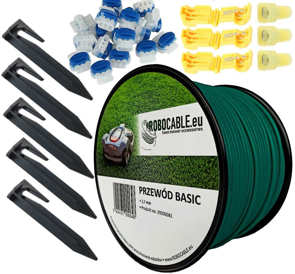 PRZEWÓD BASIC ROBOCABLE to wysokiej jakości kabel ograniczający, o średnicy 2,7 mm, który współpracuje ze wszystkimi robotami dostępnymi na rynku. Dedykowany jest do ograniczania pola pracy kosiarek robotów. Dzięki przewodowi robot nie gubi się i wykrywa obszar roboczy przy instalacjach o obwodzie nawet 600 m (dla kosiarek NAC 300 m).  Kabel jest solidnie zaizolowany PE (polietylen) aby chronić przewód przed zewnętrznymi warunkami atmosferycznymi. Przewód jest elastyczny i można go układać także przy użyciu maszyn.