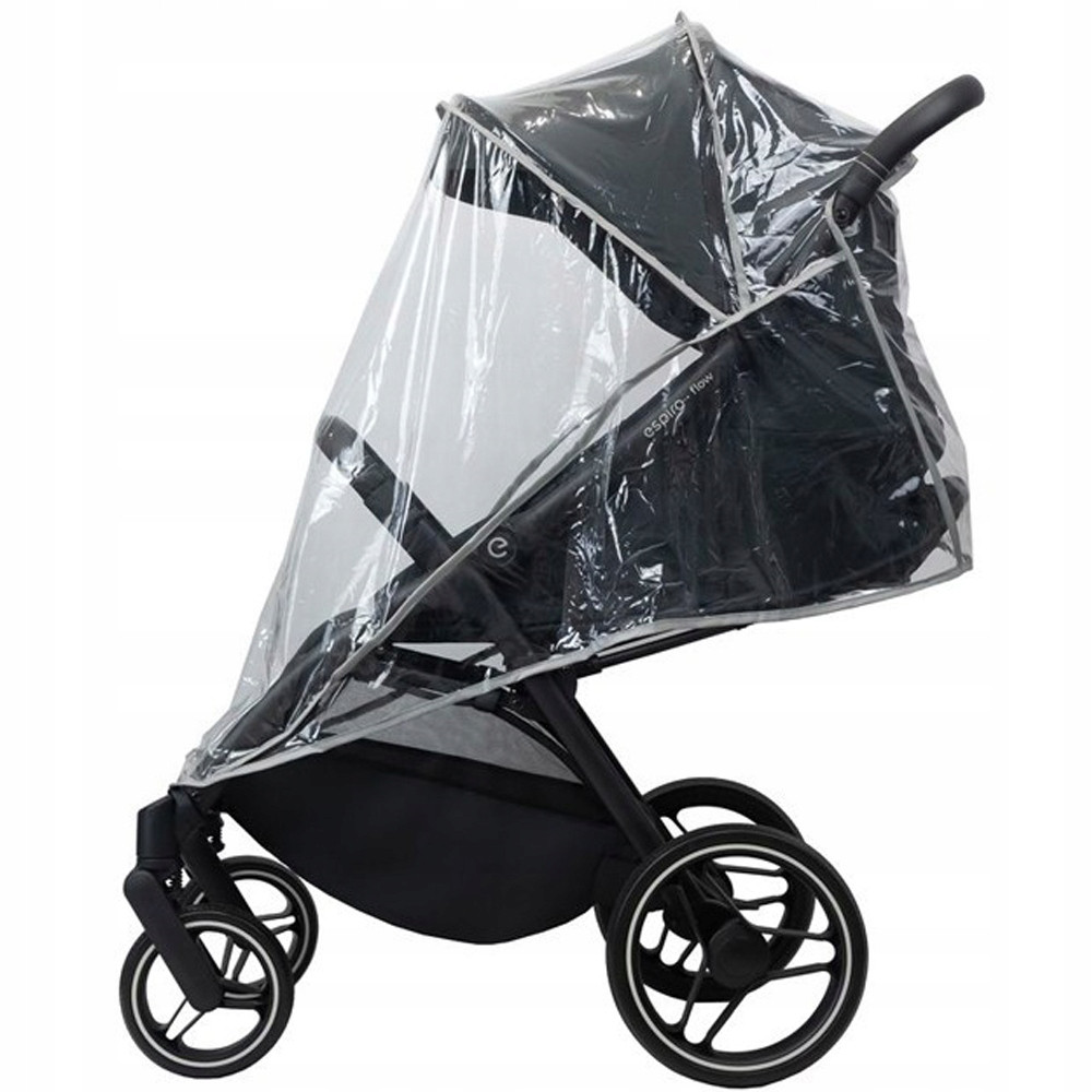 Folia przeciwdeszczowa dopasowana idealnie do wózka spacerowego espiro Flow stanowi idealną ochronę przed niesprzyjającymi warunkami atmosferycznymi.