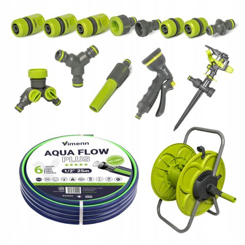 VIMENN ZESTAW WĄŻ OGROD. 6 WARSTW 1/2" 25m AQUA FLOW +  AKCESORIA + WÓZEK