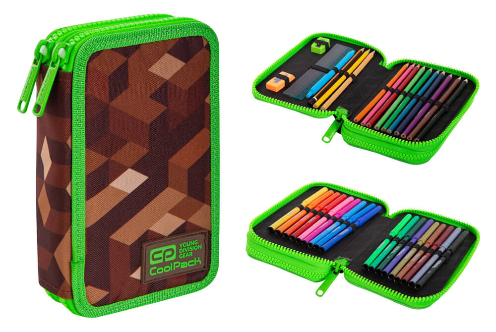 Dwukomorowy piórnik szkolny, w którym zamieszczone są najważniejsze przybory. Piórnik posiada dwie odrębne komory z zamkami błyskawicznymi. Wewnątrz znajdują się gumki do mocowania akcesoriów. Świetny design piórnika sprawia, że chętnie sięgają po niego nastolatkowie.