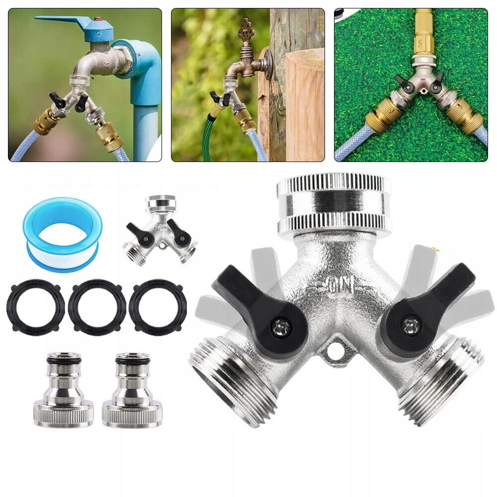 ☑️Opakowanie zawiera: 1 szt. dwukierunkowego rozdzielacza Y z odcinającymi zaworami kulowymi, 2 szt. złącza do kranu węża ogrodowego, 2 szt. podkładki i 1 szt. surowej listwy.