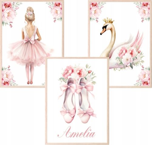 Set di 3 poster A3 Ballerina Ballet Iniziali del nome del bambino
