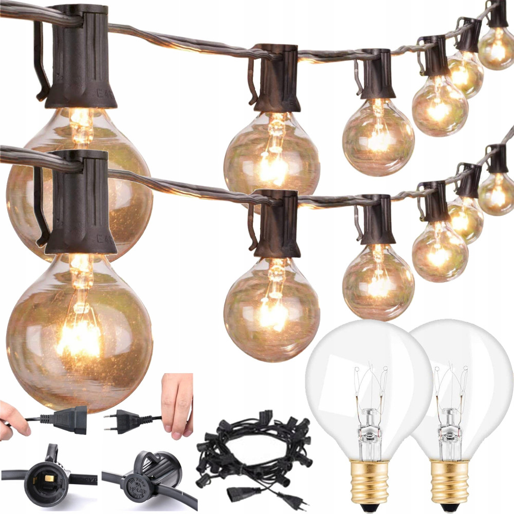 ◀◀◀  Girlandy Lampki ogrodowa 15M 25x żarówka G40 2 zapasowe żarówki ▶▶▶