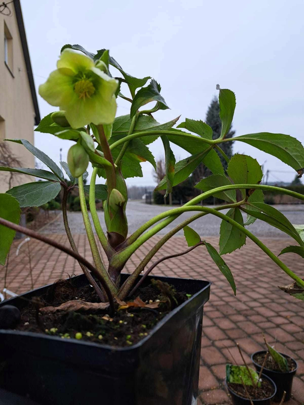 Ciemiernik o pięknych biało-zielonych kwiatach.