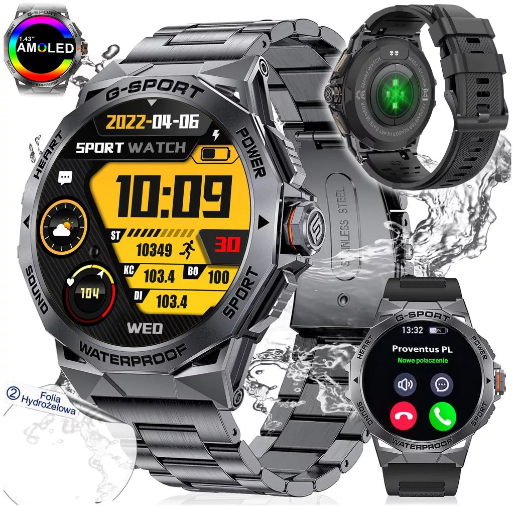 SMARTWATCH ZEGAREK MĘSKI AMOLED ROZMOWY POMIARY PULS SPORT WODOODPORNY PL