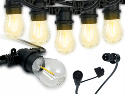 Zestaw zawiera 10-metrową girlandę oraz 10 żarówek LED E27 o ciepłej barwie światła.