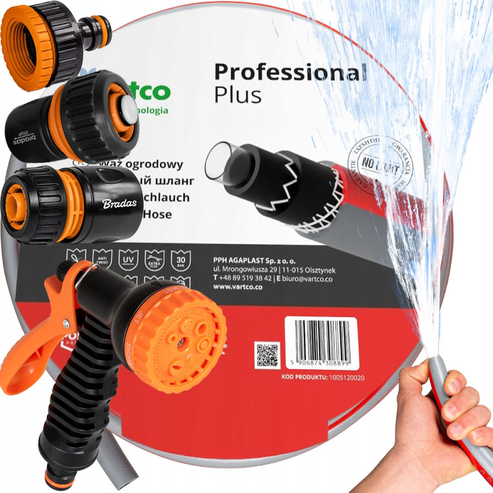 VARTCO PROFESSIONAL+ Tubo da giardino 6 strati 50m 1/2 + 4 altri prodotti