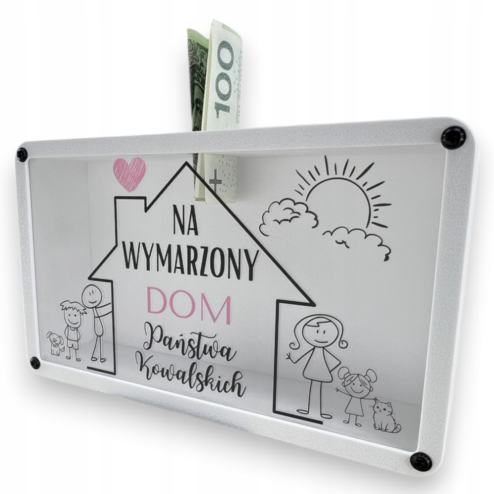 Skarbonka z nazwiskiem grafiką pojemnik, duża na prezent na wymarzony dom