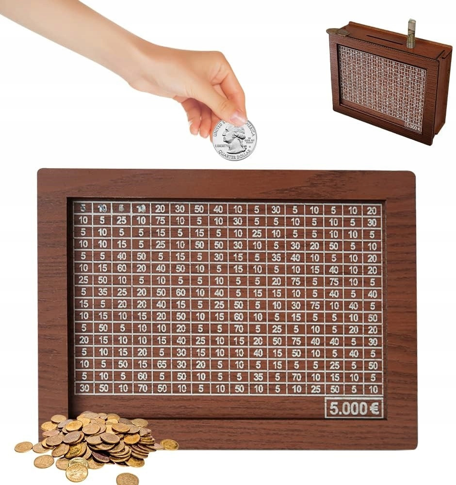 Drewniana Skarbonka z Licznikiem Celu - Motywuje do Oszczędzania Pieniędzy na Cele