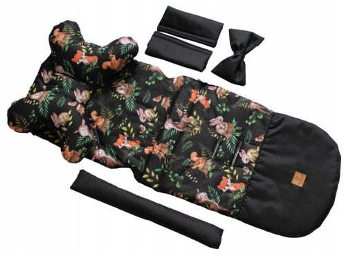Wzory: sarenki wiewiórki zajączki czarne tło + podnóżek czarny