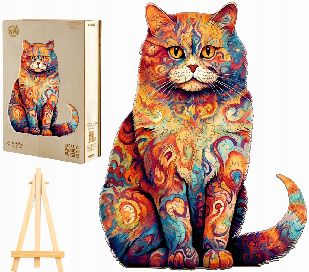 DREWNIANE PUZZLE DLA DOROSŁYCH DUŻE KOT SZKOCKI