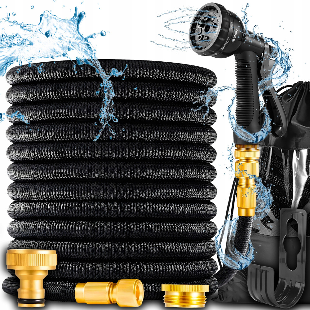 WĄŻ OGRODOWY 30m ROZCIĄGLIWY ELASTYCZNY + PISTOLET + ZŁĄCZKI Z MOSIĄDZU