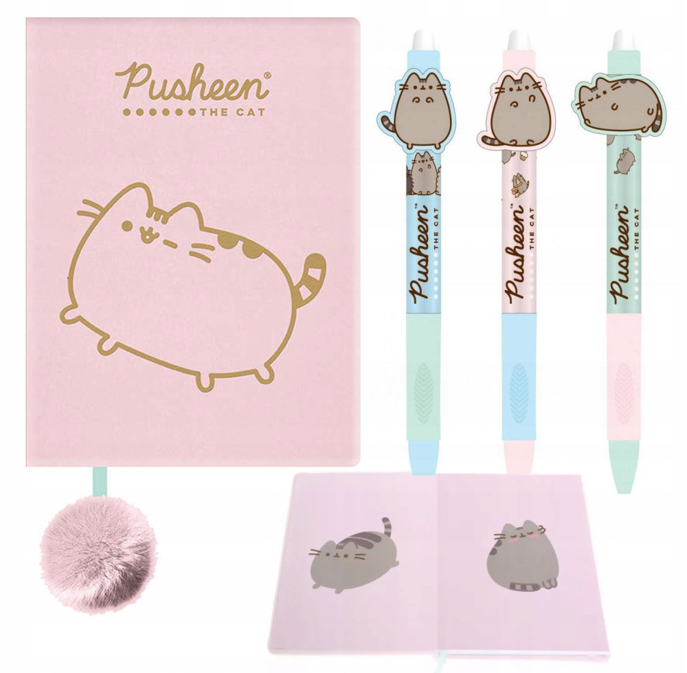 Pamiętnik Pluszowy Notes PUSHEEN + 3x Długopis Wymazywalny Kotek Majewski