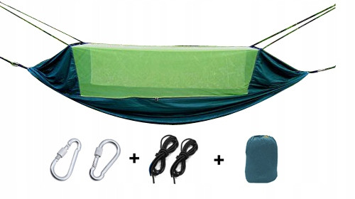 Hamak piknikowy ogrodowy survivalowy moskitiera w kolorze ZIELONYM