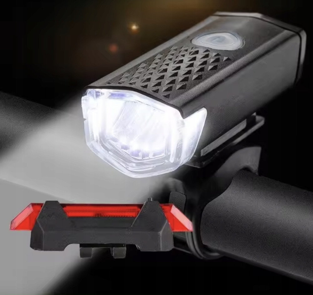 SET LAMPADE BICI TORCIA ANTERIORE POSTERIORE LUCE RICARICABILE + USB