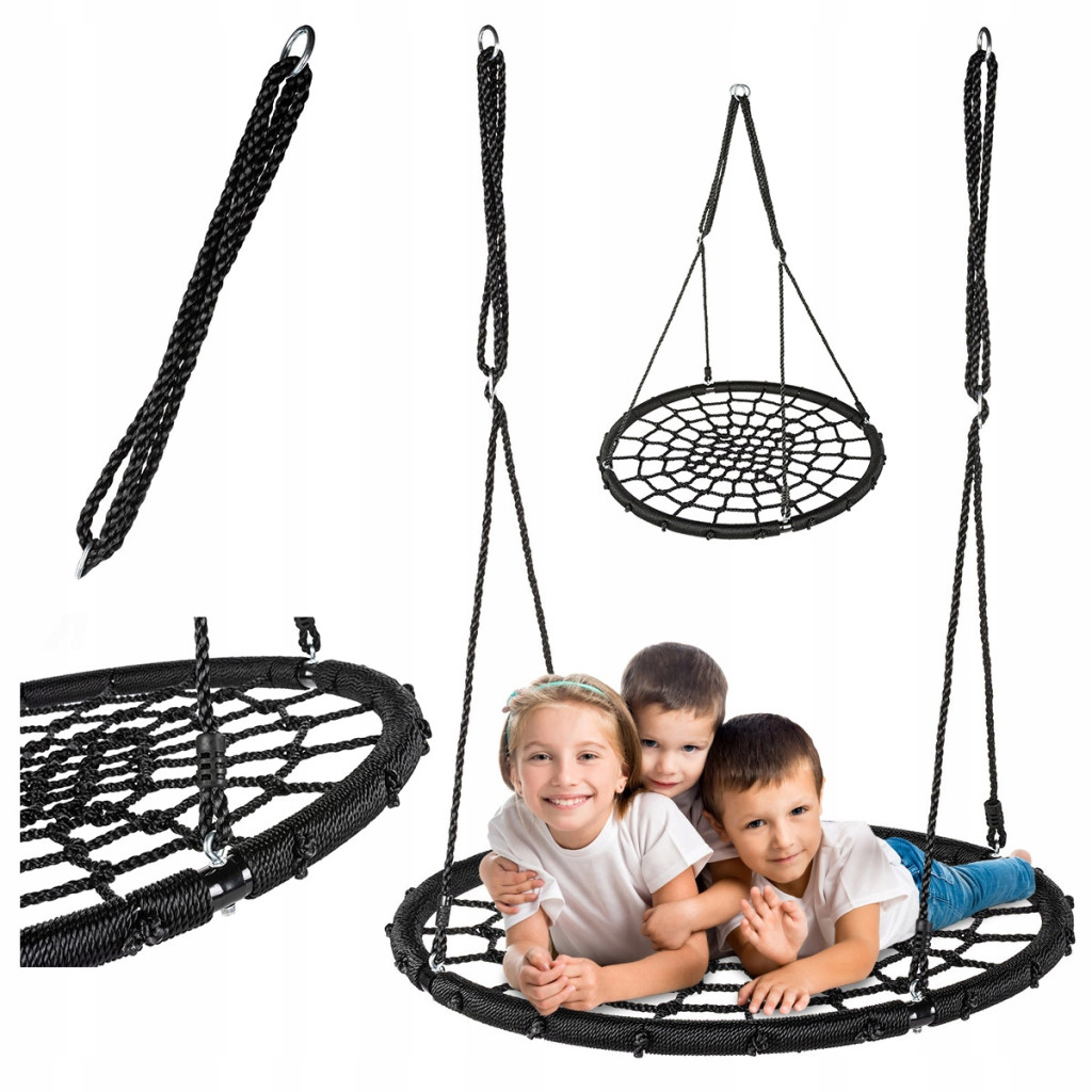 Prezentowana huśtawka wykonana została z mocnych, plecionych lin polietylenowych, które zapewniają maksymalny udźwig do 150kg. Sprawia to, że na huśtawce może bawić się jednocześnie kilkoro dzieci. Duża średnica siedziska wynosząca aż 100cm zapewnia obszerną przestrzeń do relaksu lub zabawy. Łatwy i szybki montaż pozwoli Ci korzystać z huśtawki już w chwilę po otrzymaniu przesyłki. Wytrzymałe liny mocujące o średnicy 10mm możesz regulować w zakresie od 100 do 180 cm. Dla bawiących się w pokoju dzieci najlepsza będzie niższa wysokość, a do wypoczynku w ogrodzie lub na tarasie - wyższa. Bocianie gniazdo marki Outtec posiada trwałą konstrukcję odporną na niekorzystne warunki atmosferyczne. Huśtawka być pozostawiona na zewnątrz przez całą wiosnę, jesień i zimę, albowiem niestraszna jej korozja.