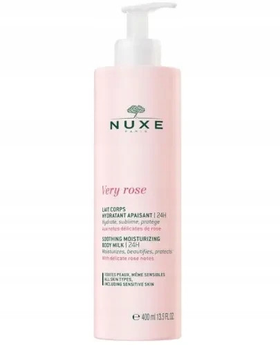 Nuxe Very Rose nawilżające mleczko do ciała to produkt kosmetyczny do pielęgnacji każdego rodzaju skóry, w tym wrażliwej. Produkt w swoim składzie zawiera 96% składników pochodzenia naturalnego.
