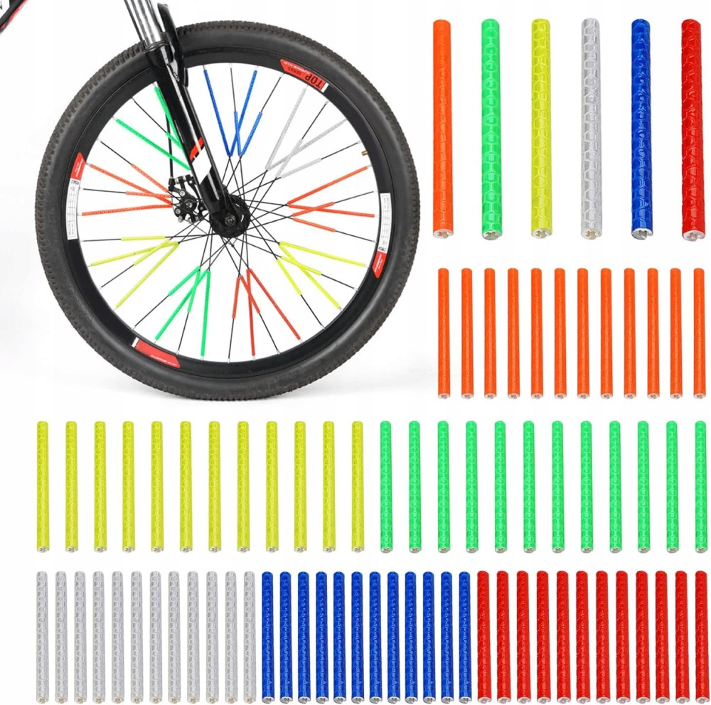 ✰Komplet 72 Kolorowych, Odblaskowych Rurek do założenia na Szprychy✰