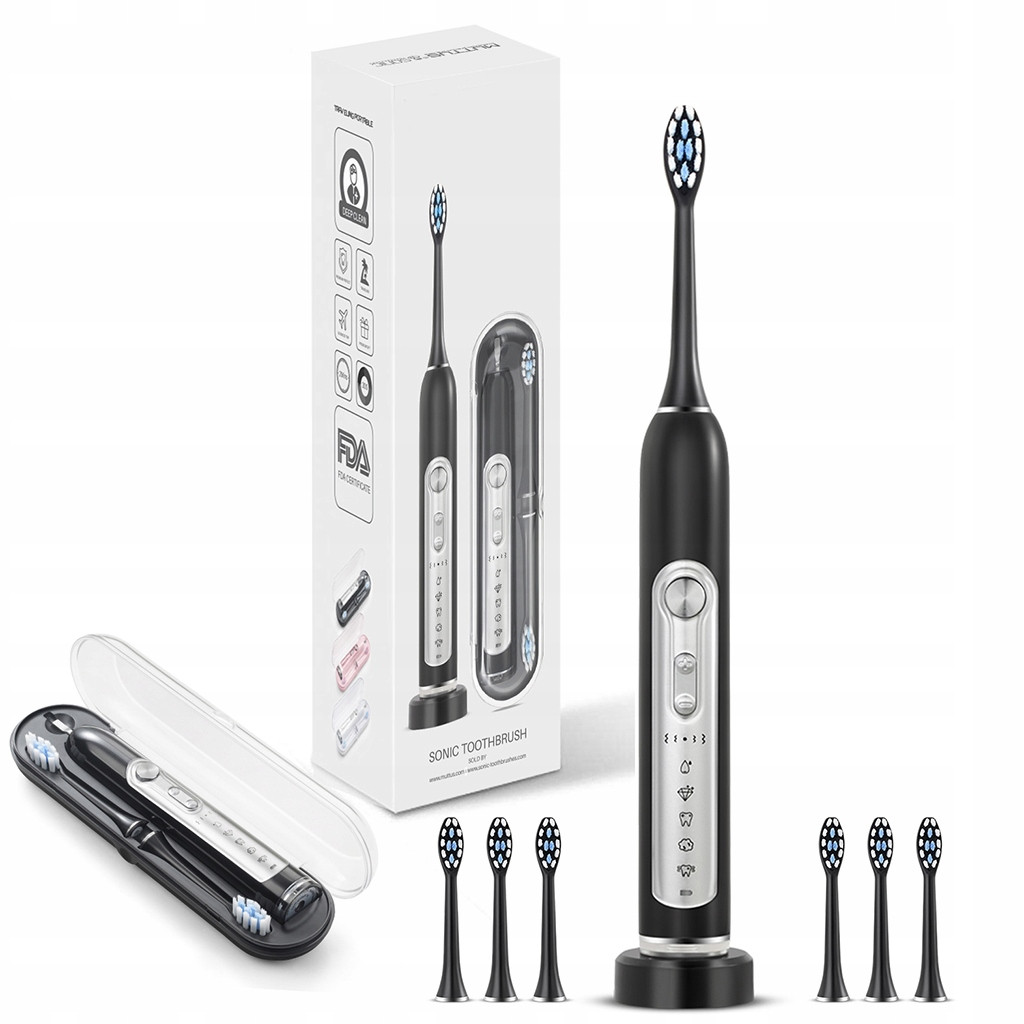 Elektryczna szczoteczka do zębów SUBORT S7 5 trybów 6 końcówek z etui podróżnym (czarna)