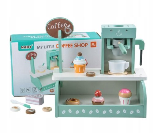 Drewniana kawiarnia z ekspresem do kawy to idealny produkt do zabawy w sklep, kawiarnię lub cukiernię – zapewni dużo świetnej zabawy dzieciom stojącym po obu stronach lady! Twoja pociecha może wyeksponować wszystkie słodkości na półkach.
