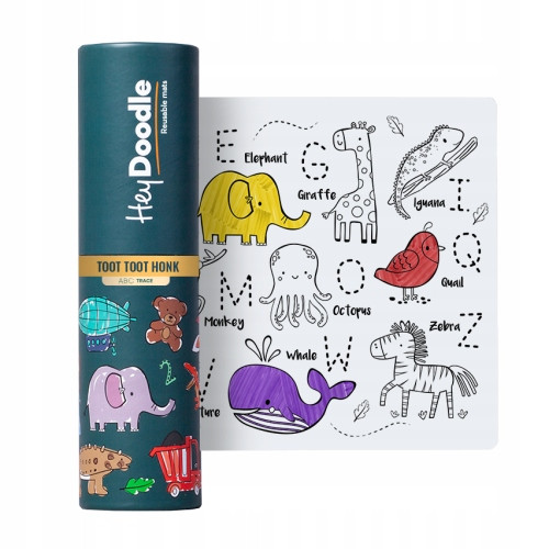 Australijska firma HeyDoodle zaprojektowała opakowania tak, aby było ładne i praktyczne, dlatego maty idealnie sprawdzą się na prezent, a potem w zabawie w domu, w podróży, w samochodzie, u babci i cioci, a po zabawie, można ponownie schować flamastry i matę do estetycznego opakowania.