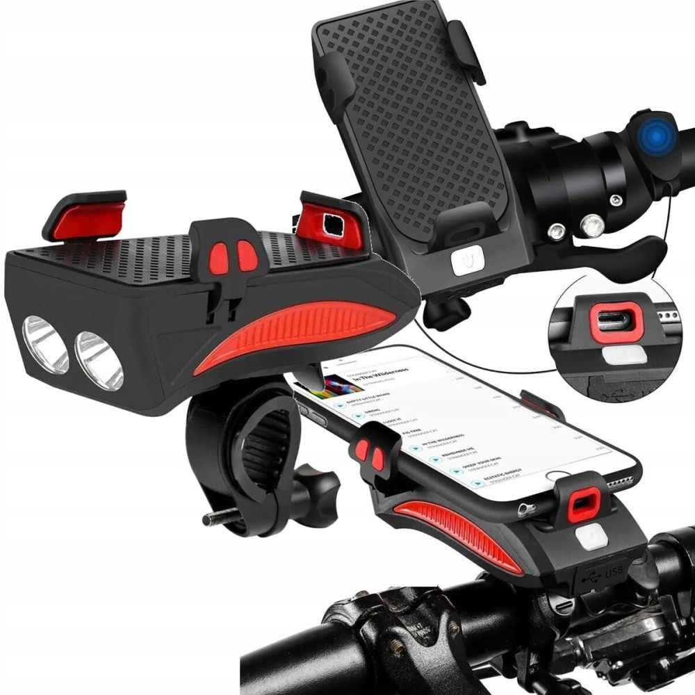 Lampada anteriore per bicicletta a LED + campanello + supporto per telefono USB impermeabile
