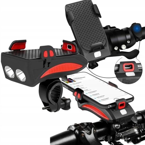 LAMPKA ROWEROWA LED T6 Z DZWONKIEM + UCHWYT NA TELEFON 4-6"
