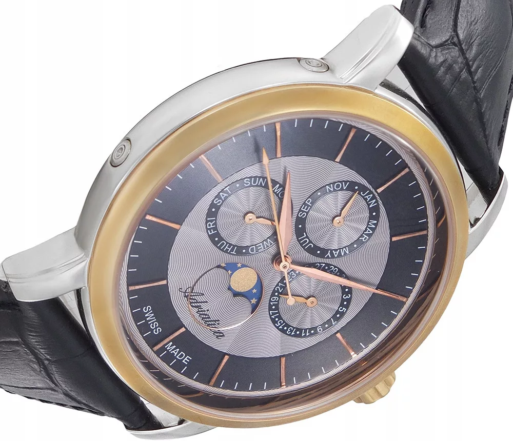 • Datownik wskazuje dzień tygodnia, dzień miesiąca, miesiąc, fazę księżyca