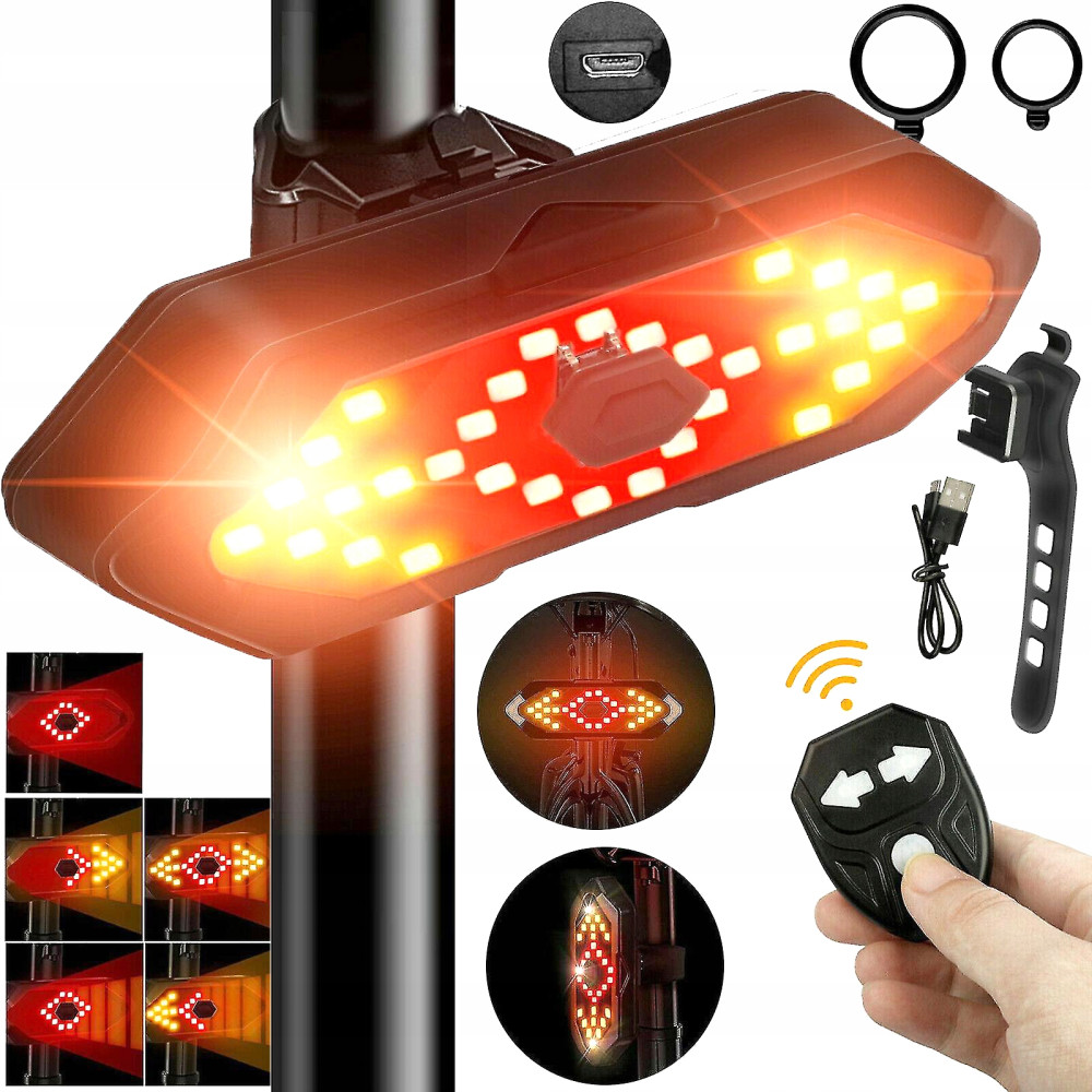 Lampka Rowerowa Tylna z Kierunkowskazem, Migaczem, Sygnalizatorem USB i Pilotem