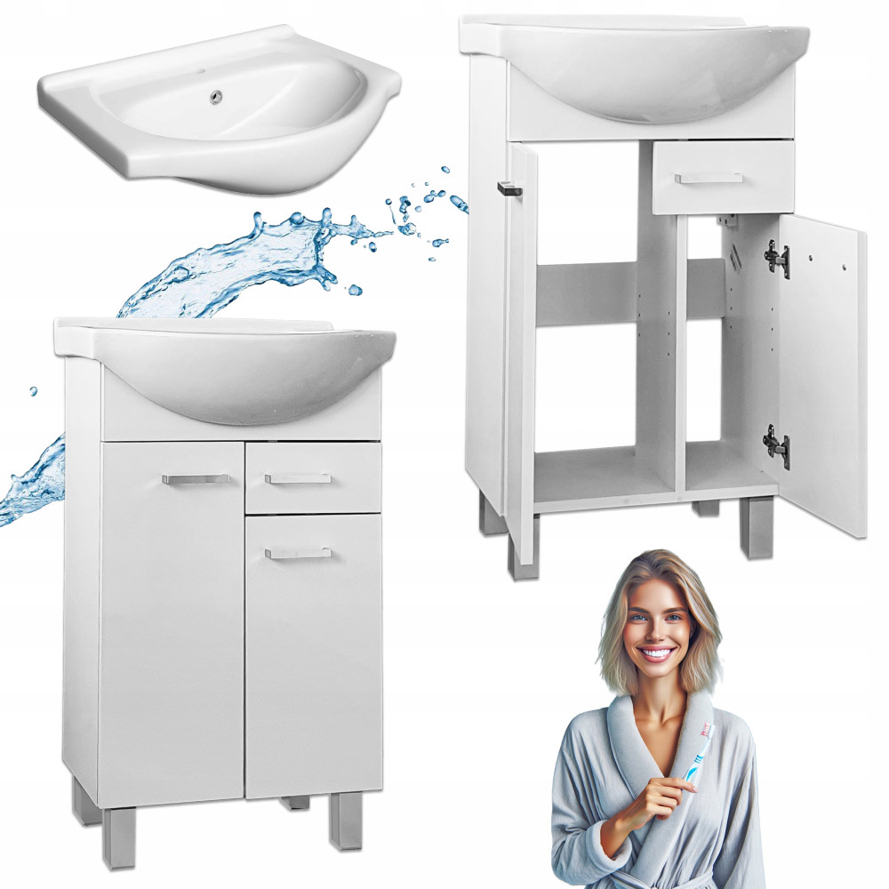 ✅ Szafka wykonana z płyty laminowanej z lakierem światłoutwardzalnym, umywalka z ceramiki.