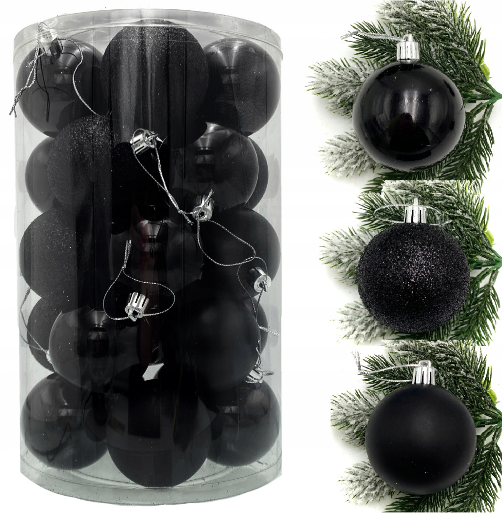 BOLLE DI NATALE PER L'ALBERO DI NATALE, NERO, SET 6cm, 25pz