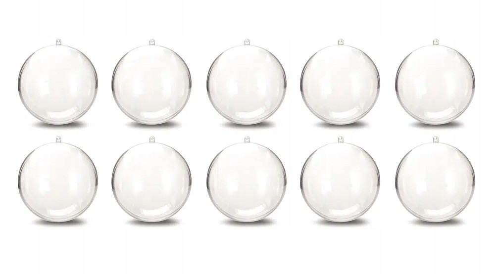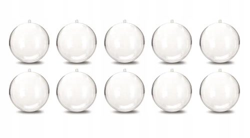 Przeznaczone do wykonywania pięknych dekoracji typu decoupage, florystycznych itp akrylowe kule o średnicy 8 cm - 12 szt. Kule są łączone w połowie i posiadają niewielką, dyskretną zawieszkę, będącą integralną częścią jednej z połówek kuli. Dzięki nim wykonasz ozdobne bombki, łańcuchy, kompozycje i wiele innych dekoracji, które przyjdą Ci do głowy. Kulę można wypełnić kolorowymi piórkami, organzą, pomalować lub umieścić w niej inna dekorację.