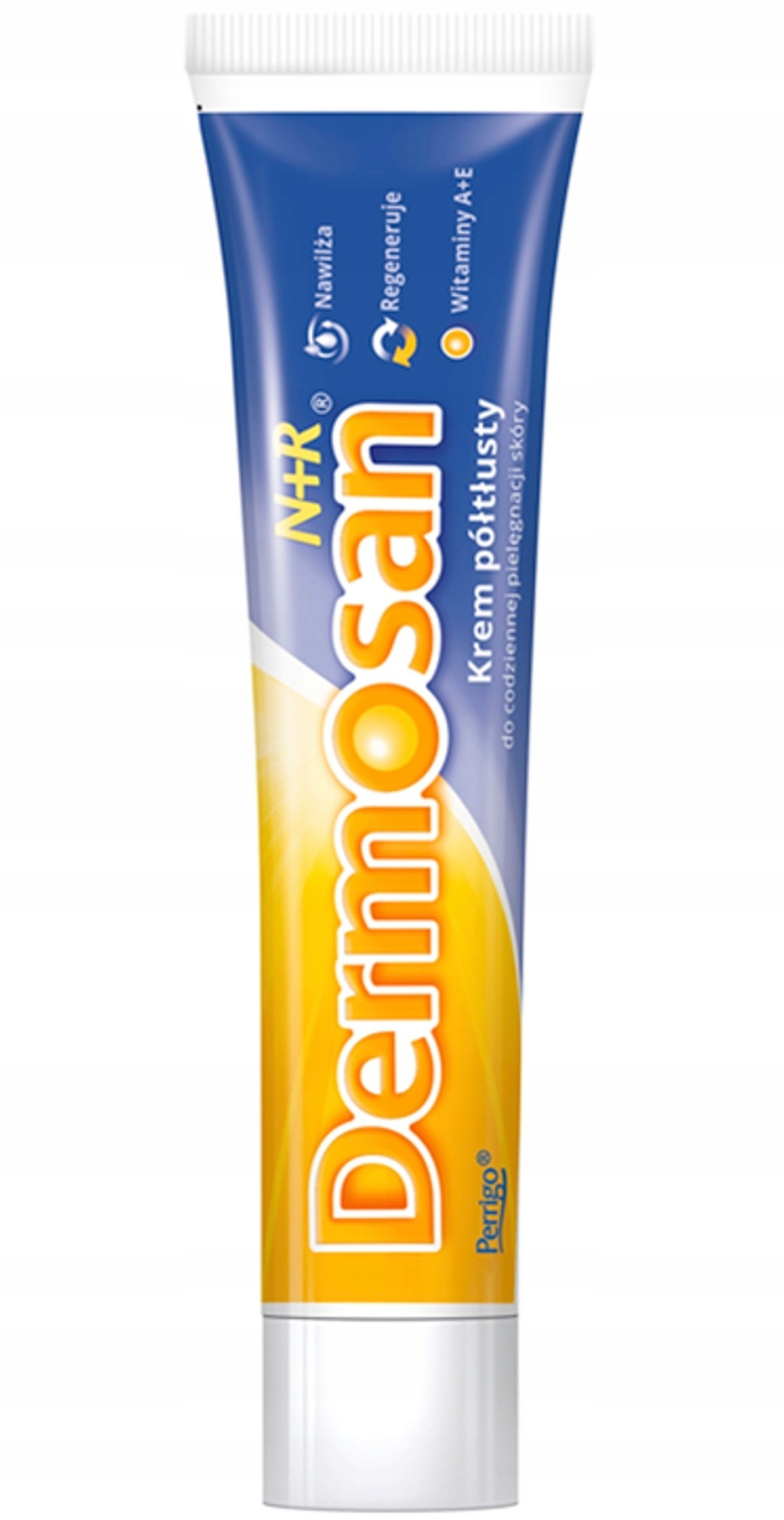 Krem półtłusty Dermosan skutecznie regeneruje naskórek, pozostawiając skórę gładką i sprężystą. Półtłusta i lekka konsystencja kremu, delikatnie nawilża skórę, a pH 5,5 preparatu ogranicza możliwe podrażnienia skóry.