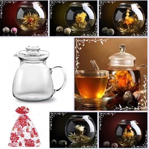 Zestaw dzbanek szklany + 5 herbat kwitnących (w miarę dostępności herbat)