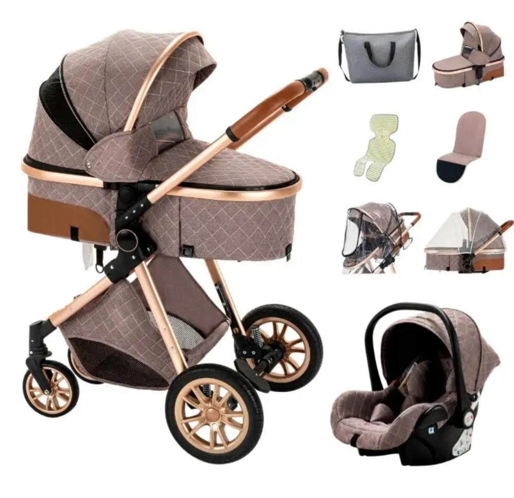 to wielofunkcyjny wózek z najnowszej kolekcji, prawdziwy HIT! Może być używany jako wózek głęboki, spacerowy oraz fotelik samochodowy z możliwością montażu na ramie wózka. Wykonany z najwyższej jakości tkanin, które nie tylko prezentują się niezwykle elegancko, ale są także bardzo odporne na blaknięcie oraz wilgoć. Ekskluzywne tkaniny zapewniają także podróżującemu dziecku idealną temperaturę oraz wilgotność powietrza niezależnie od panujących warunków atmosferycznych. Dla maksymalnej funkcjonalności oraz komfortu użytkowania wiele elementów wózka takich jak prowadnica, barierka oraz podnóżek spacerówki zostało wykonane z wytrzymałej skóry. Dzięki czemu produkt posłuży przez długi okres czasu.