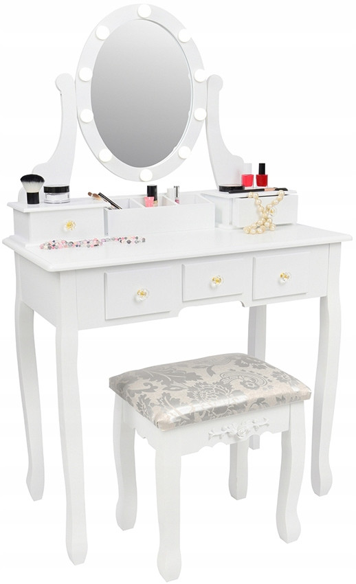 • Toaletka z oświetleniem w dużym lustrze. Idealna dla każdej kobiety do codziennego makijażu oraz stylizacji fryzury.