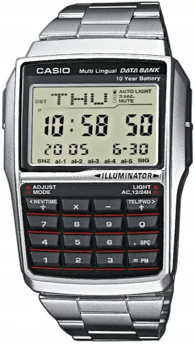 Funkcje: 5 alarmów z funkcją drzemki, datownik, druga strefa czasowa, kalendarz automatyczny, kalkulator, kalkulator walut, podświetlenie tarczy LED, stoper, telenotatnik 25 pozycji, wyświetlanie dni tygodnia w różnych językach