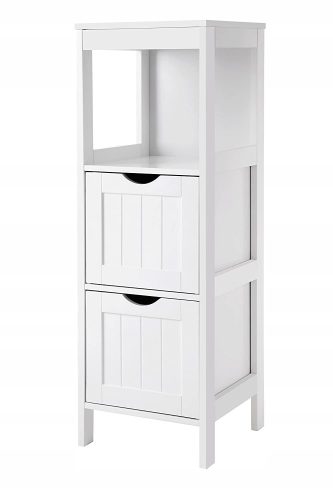 Uniwersalny regał z dwiema szufladami i otwartą półką, doskonale sprawdzi się w łazience i w każdym innym pomieszczeniu.