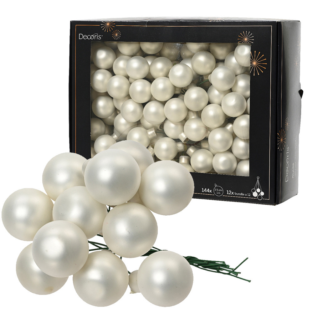 Sfere di vetro su filo, bianco freddo opaco, D-2,5 cm, set. 144 pz.