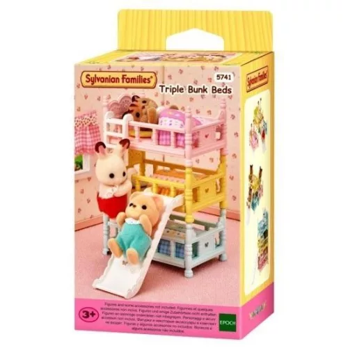 Te sprytne łóżka piętrowe ze zdejmowanymi drabinkami można ustawiać jeden na drugim w różnych konfiguracjach, a nawet używać jako trzy łóżka pojedyncze! Każde łóżko ma inną kolorystykę, np.; różowy, cytrynowożółty i błękitny z pasującym wygodnym materacem, przytulnym kocem i poduszką. Jest nawet zjeżdżalnia - co za fajny sposób na wstanie rano z łóżka!