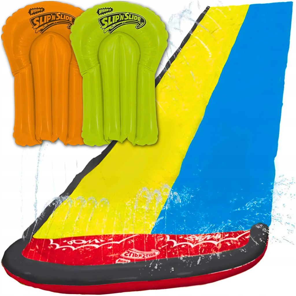 ŚLIZG WODNY PODWÓJNY ŚLIZGAWKA Z FONTANNĄ +2 DESKI ZABAWKA DO OGRODU